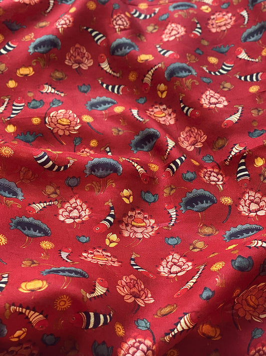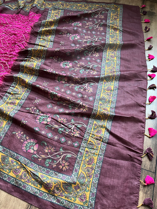 Ajrakh Katan Rai Dana Purple Red Bandhej Saree