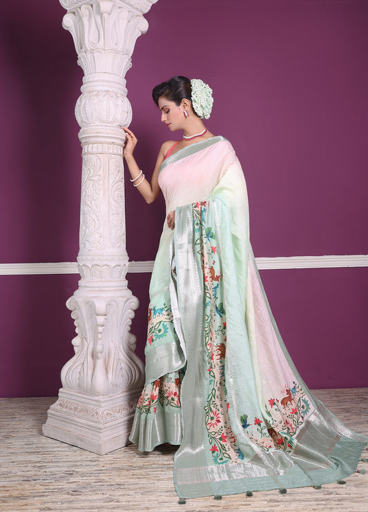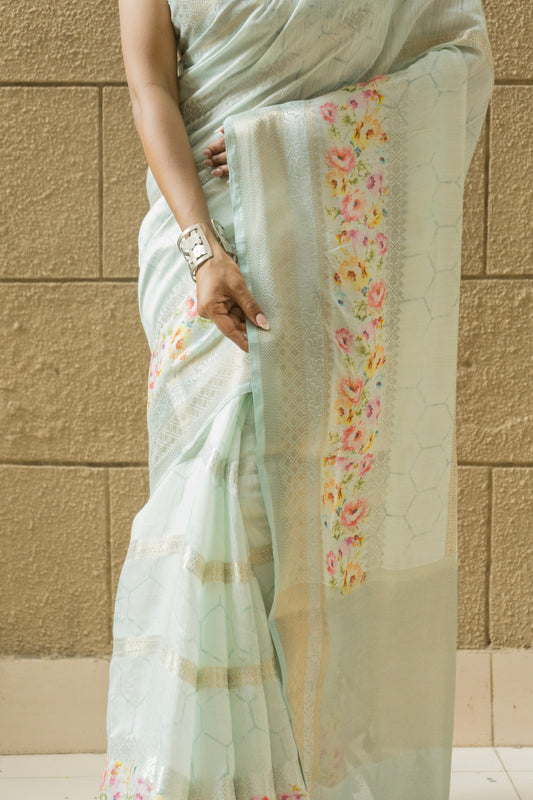 Aasmani Kadhua Jangla Silk Tissue Saree