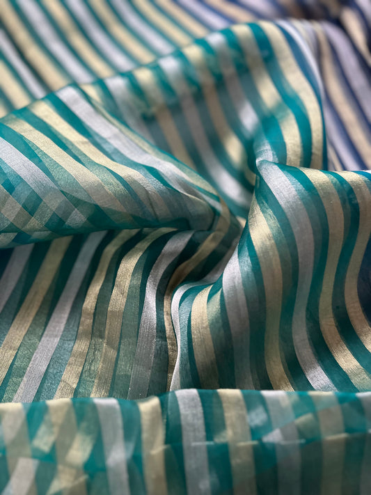 Organza Stripes Dupatta (Blue-Green)