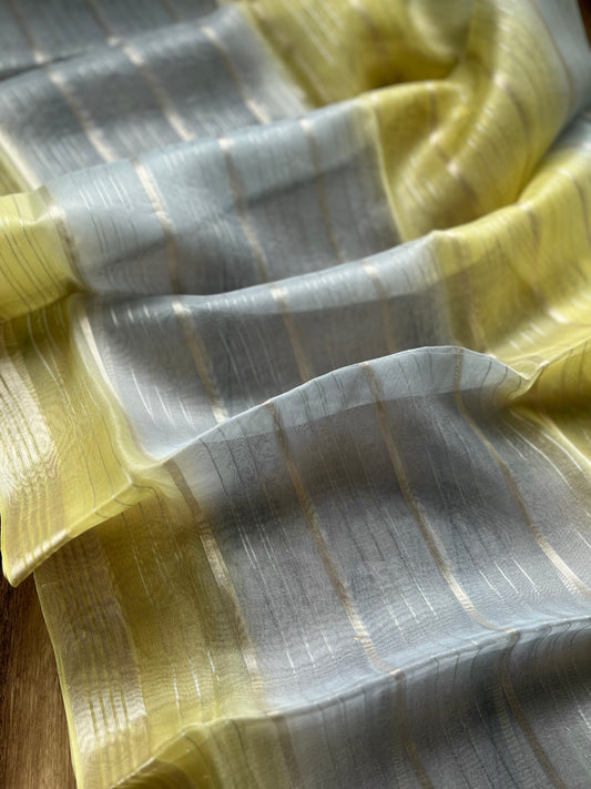 Kora Stripes Dupatta (Bluish Grey-Yellow)