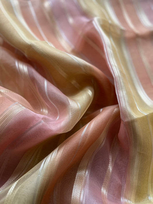 Kora Stripes Weaving Dupatta (Yellow-Orange-Pink)