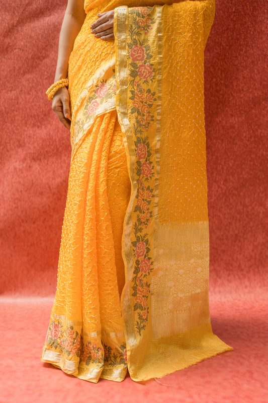 Kota Shaded Yellow Bandhej Embroidered Saree