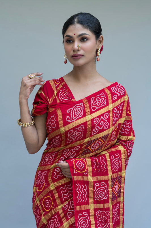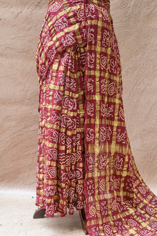 Cotton Gharchola Rai Dana Maroon Bandhej Saree