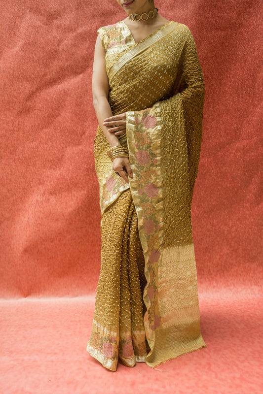 Moonga Rai Dana Mustard Bandhej Saree