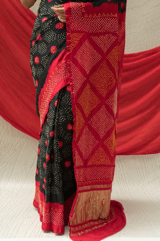 Gajji Red Black Bandhej Saree