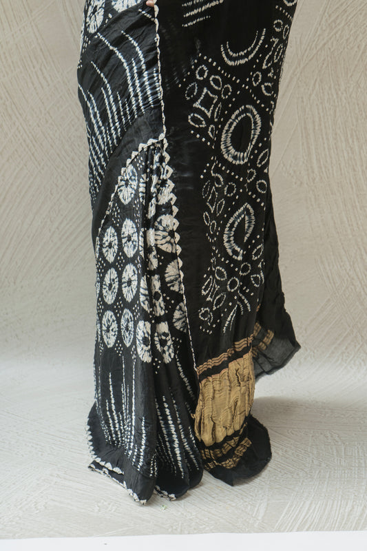 Gajji Shibori Rai Dana Black Bandhej Saree