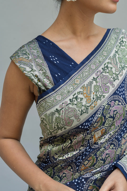 Georgette Patola Boota Meenakari Royal Blue Bandhej Saree
