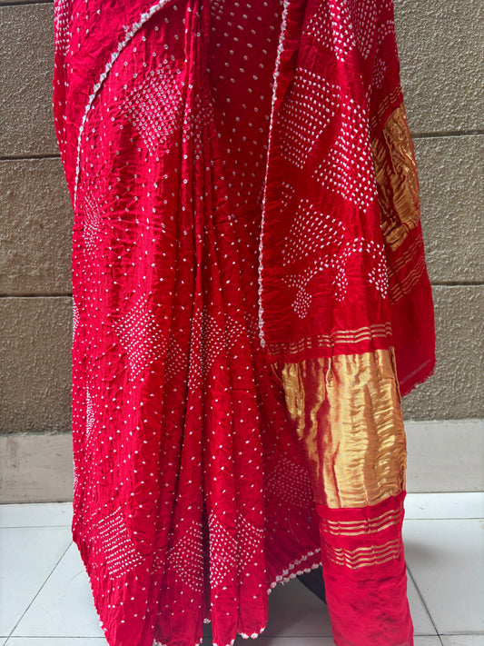 Gajji Intricate Rai Dana Red Bandhej Saree