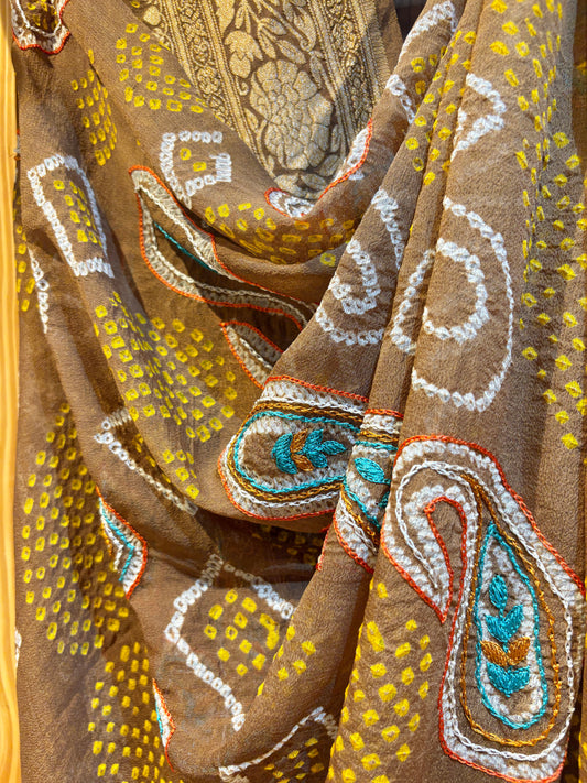 Georgette Rai Dana Yellow Bandhej Dupatta