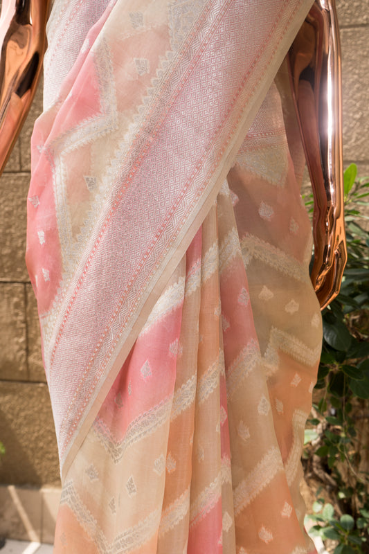 Handloom Chiniya Rangkat (Pastel Pink) Saree