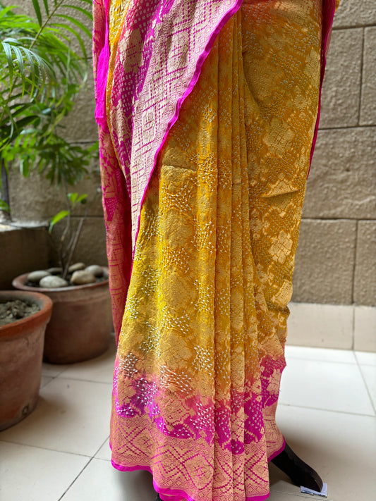 Kadhua Rai Dana Meenakari Royal Blue Bandhej Saree