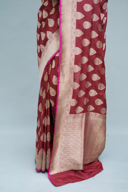 - Authentic Banarasi Weaving – Traditional techniques passed down through generations of weavers.