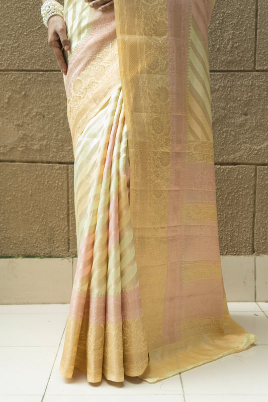 Rangkat Yellow-Peach Chiniya Leheriya Saree