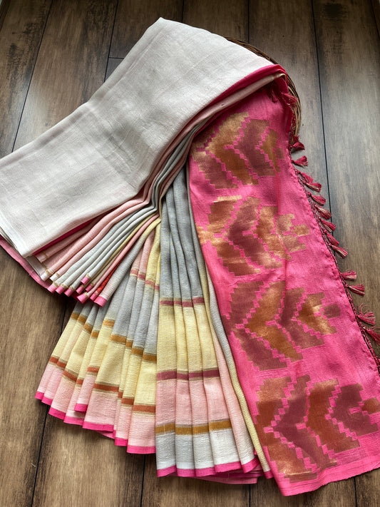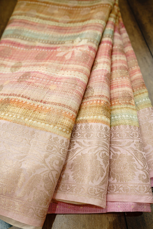 Kora Silk Brushing Effect Saree (Shades of Green)