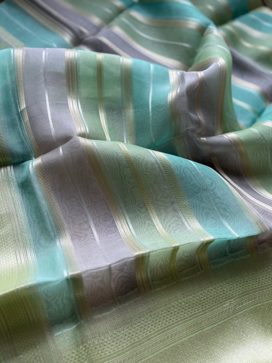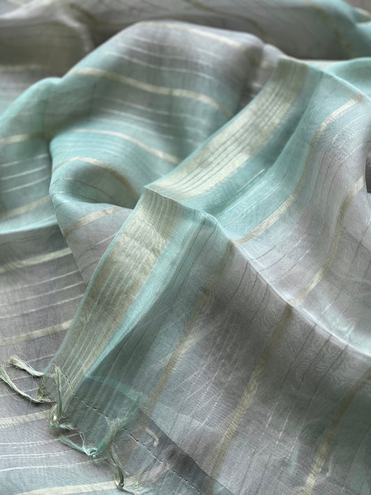 Kora Stripes Weaving(Sea Green-Grey) Dupatta