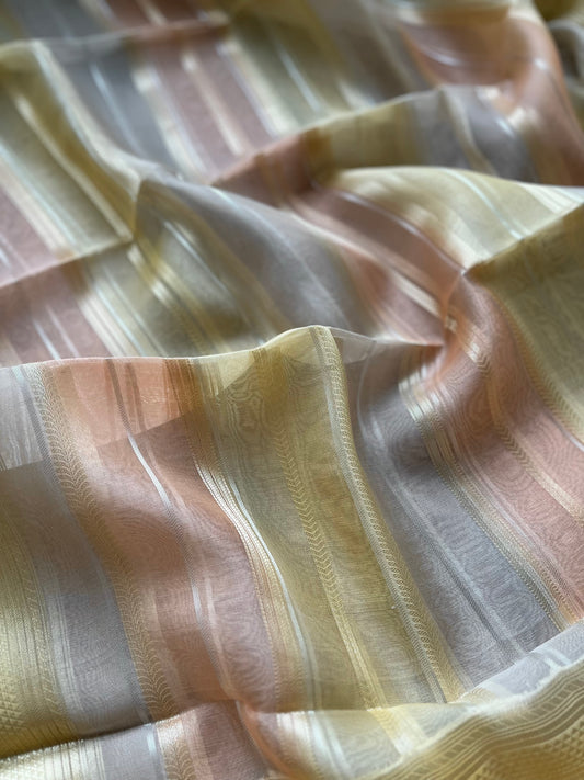 Kora Stripes Weaving Dupatta (Yellow-Orange-Grey)
