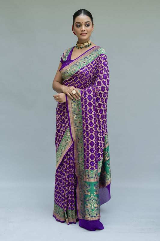 Georgette Patola Boota Meenakari Royal Blue Bandhej Saree