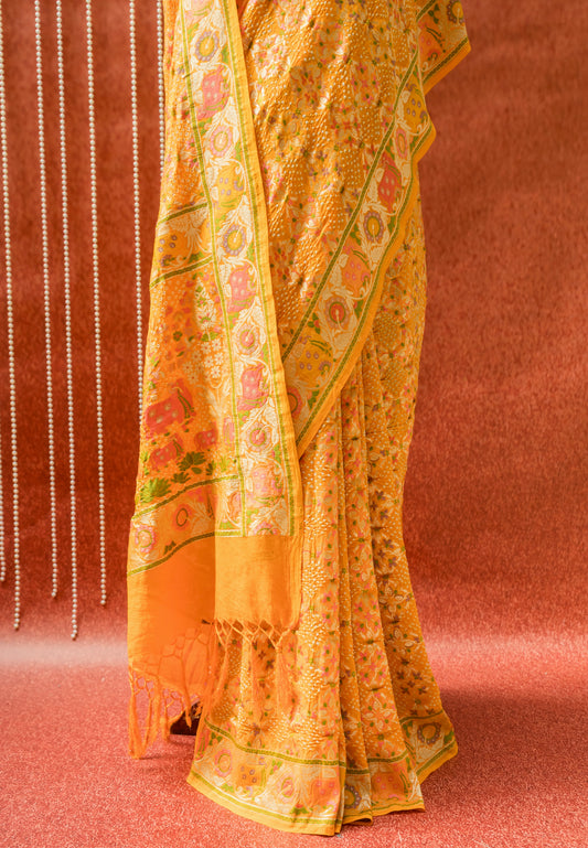 Georgette Patola Boota Meenakari Yellow Bandhej Saree
