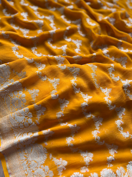 Kora Stripes Weaving Dupatta (Yellow-Orange-Pink)