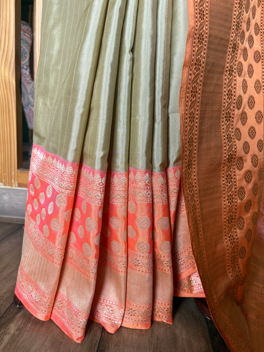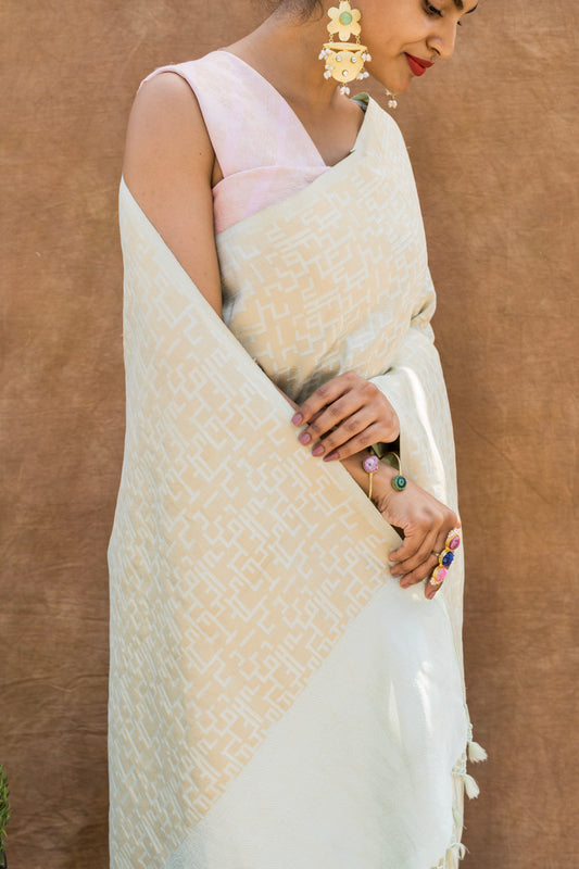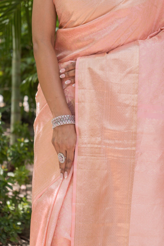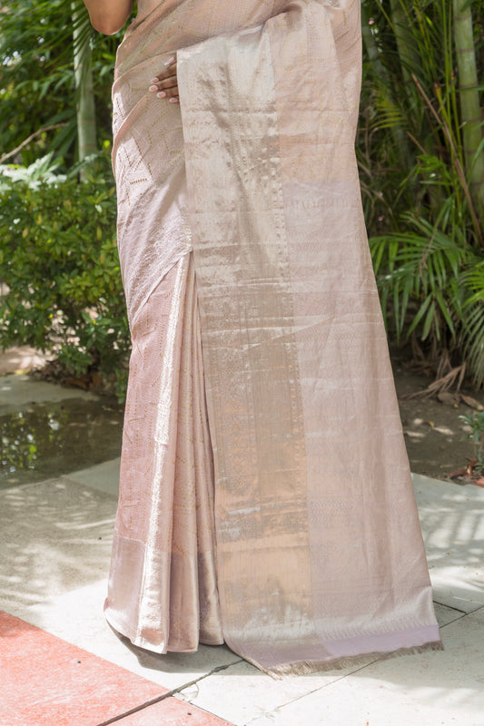 Tanchoi Symmetric Weaving Aasmani-Baby Pink Saree
