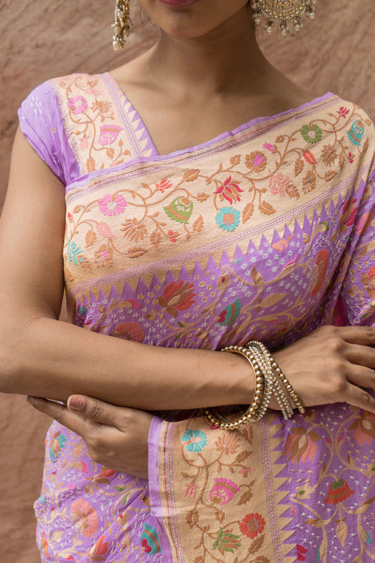 Georgette Floral Meenakari Bandhej Lilac Saree