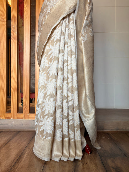 Gajji Ajrakh Sarkam Rai Dana Chocolate Brown Bandhej Saree