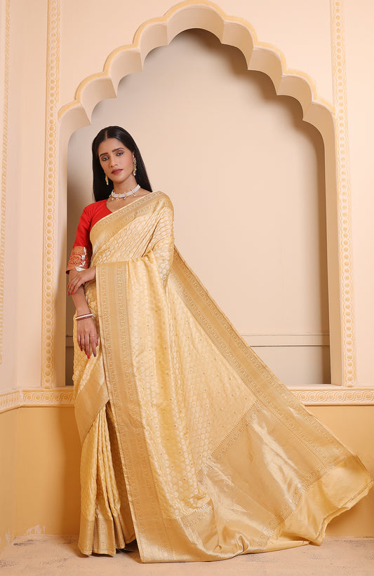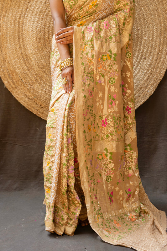 Cream Meenakari Rai Dana Georgette Bandhej Saree