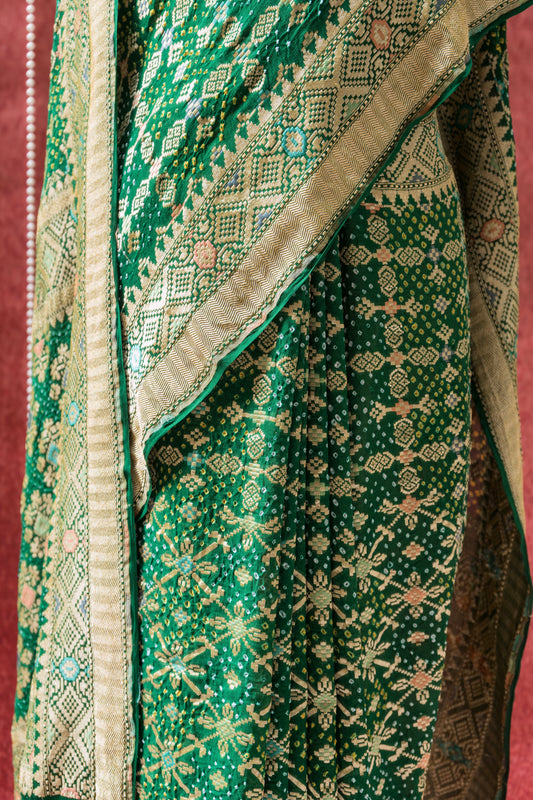 Georgette Patola Meenakari Green Bandhej Saree
