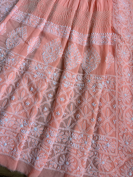 Georgette Lucknowi Baby Pink Bandhej Dupatta