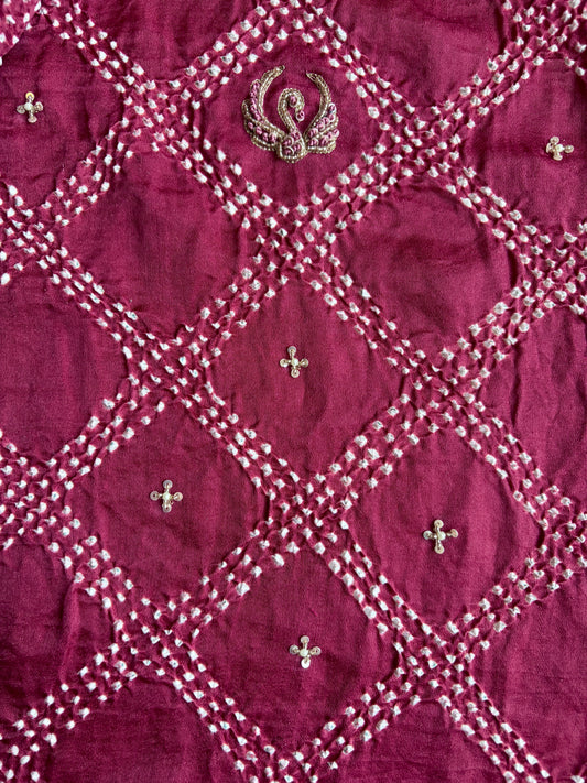 Swan Embroidered Gajji Magenta Bandhej Dupatta