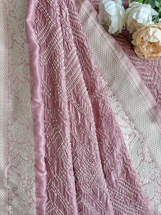 Katan Parsi Pastel Pink Bandhej Saree