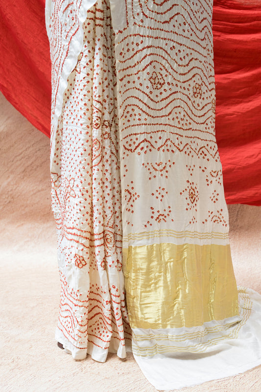 Neemzari Tilfi Meenakari Red Bandhej Saree