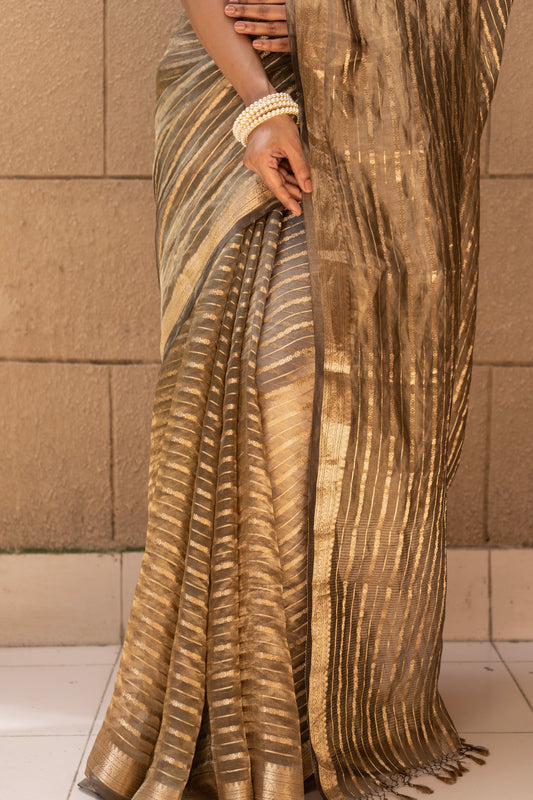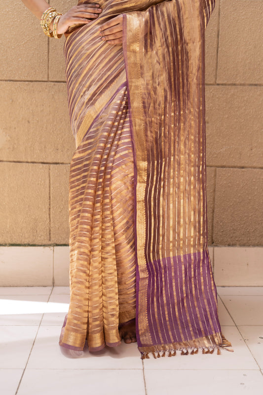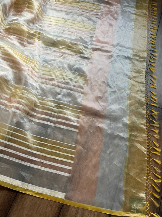 Tissue Stripes Rangkat Saree (Shades of Yellow)