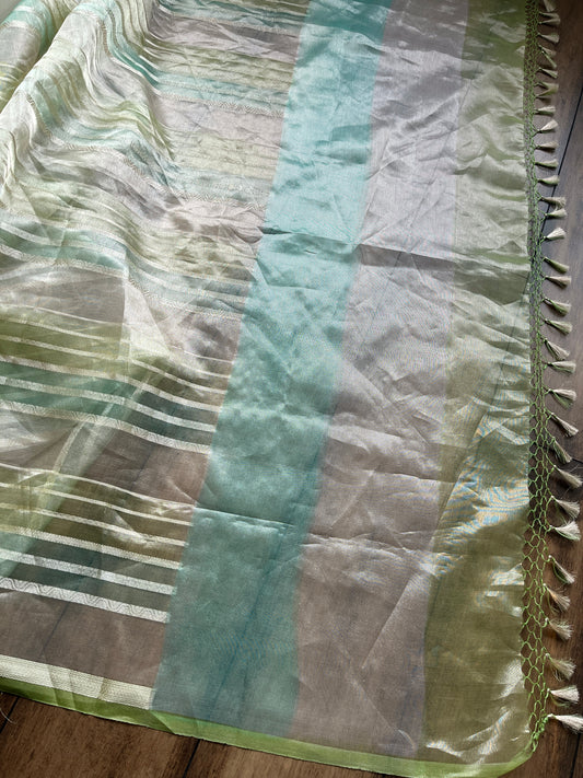 Tissue Stripes Rangkat Saree (Blue-Green)