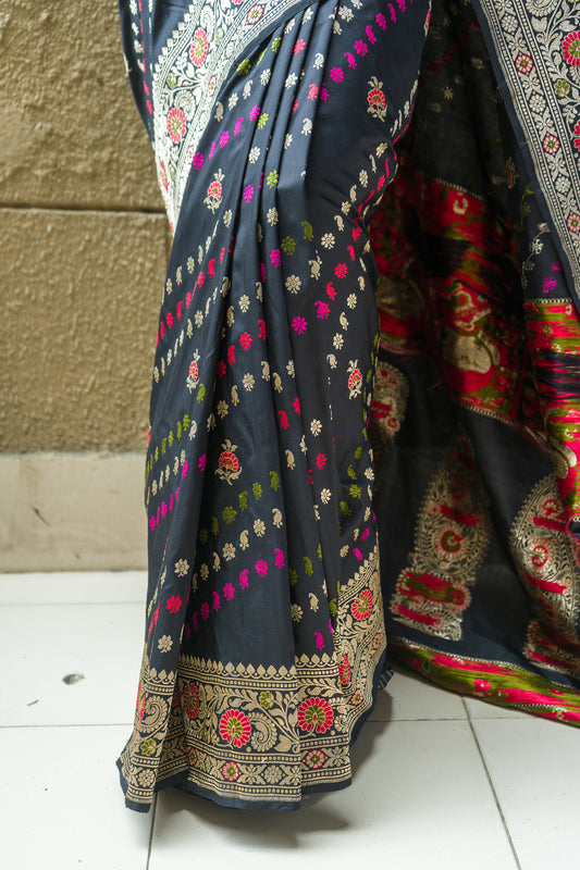 Katan Kadhua Meenakari (Black) Saree