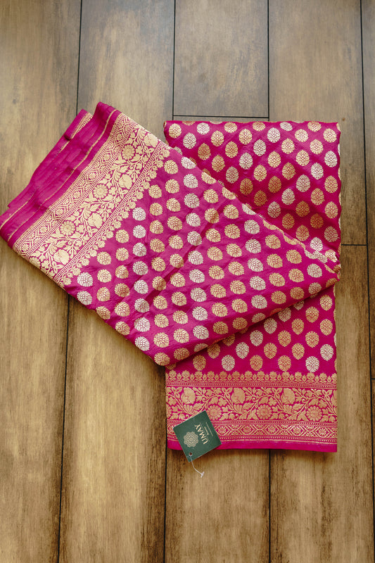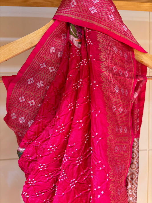 Paithani Patch Rai Dana Bandhej Saree (Hot Pink)