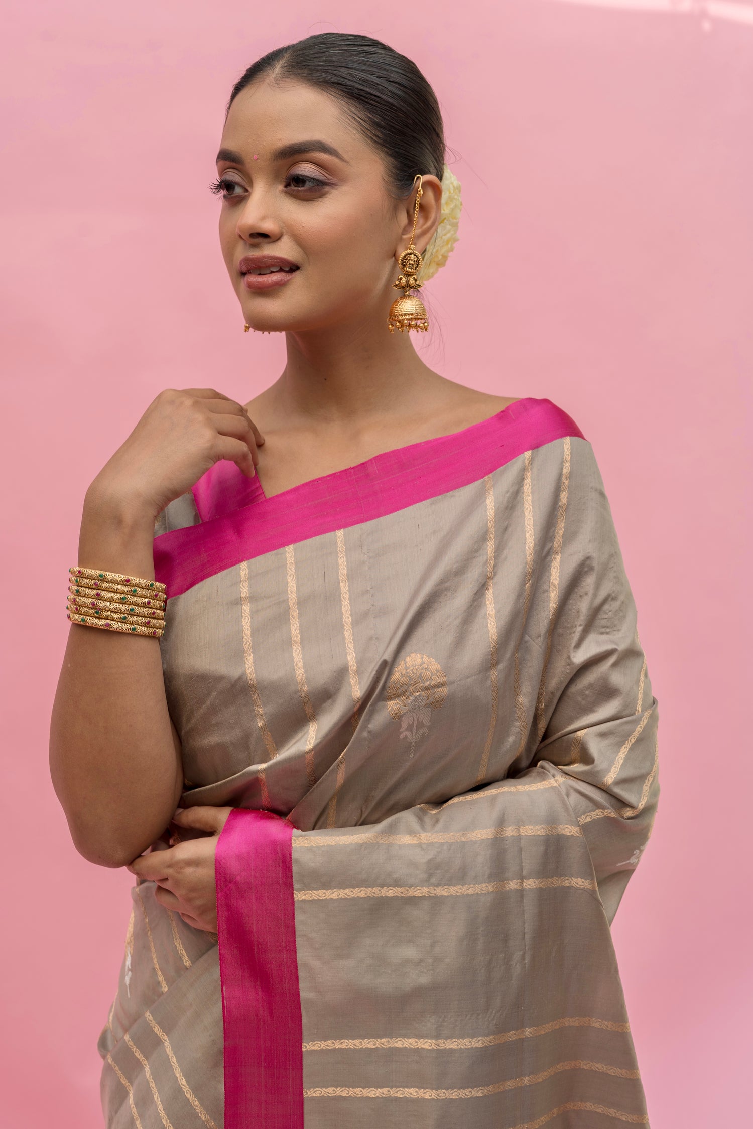 • Purple Katan Kadhua Meenakari Jangla Banarasi saree in Dhoop Chaav Purple shade