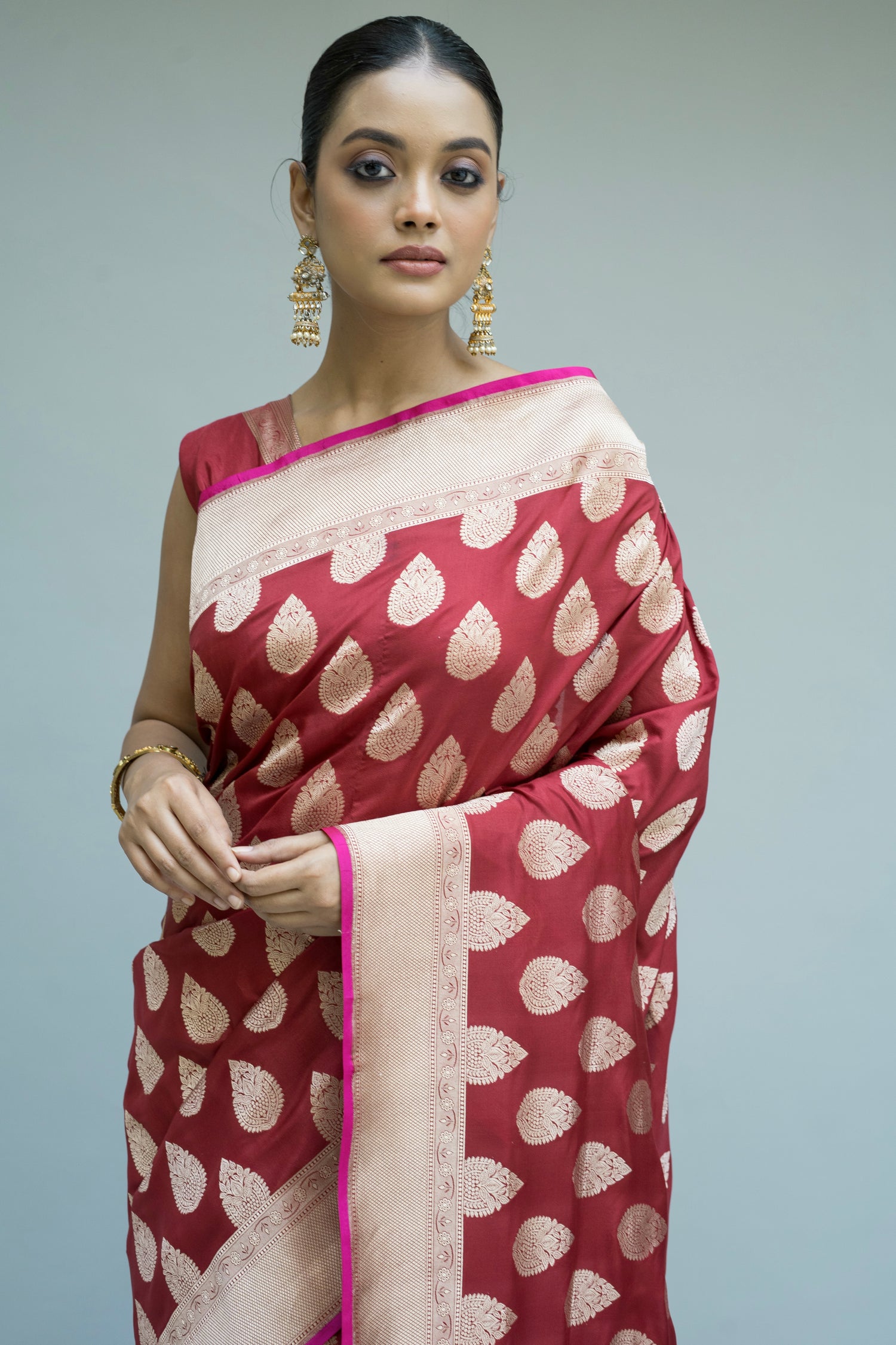 • Purple Katan Kadhua Meenakari Jangla Banarasi saree in Dhoop Chaav Purple shade