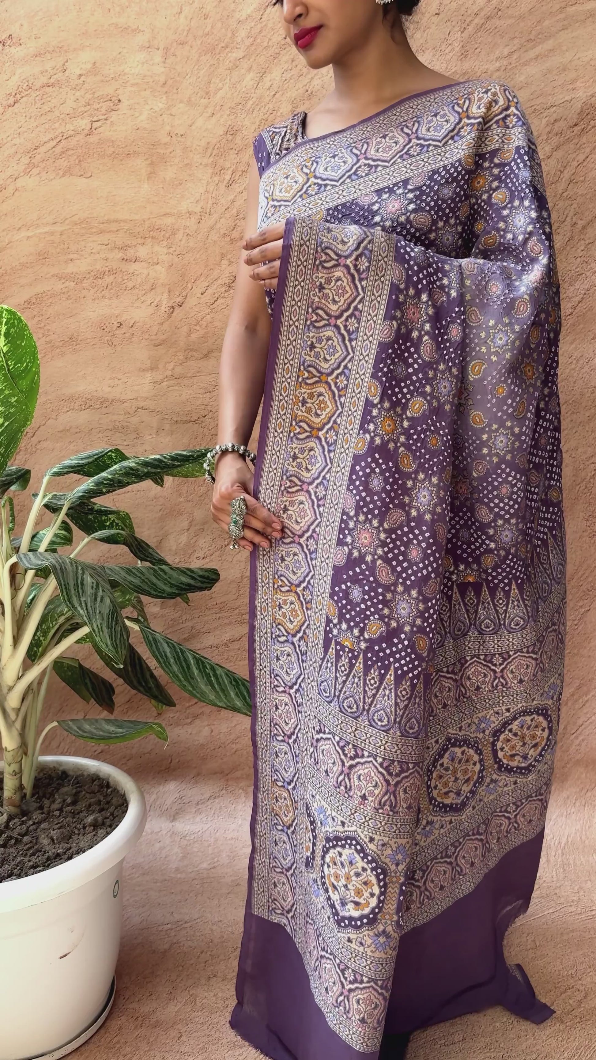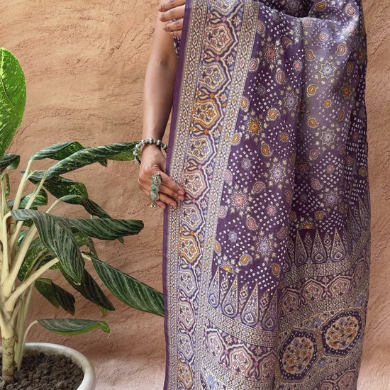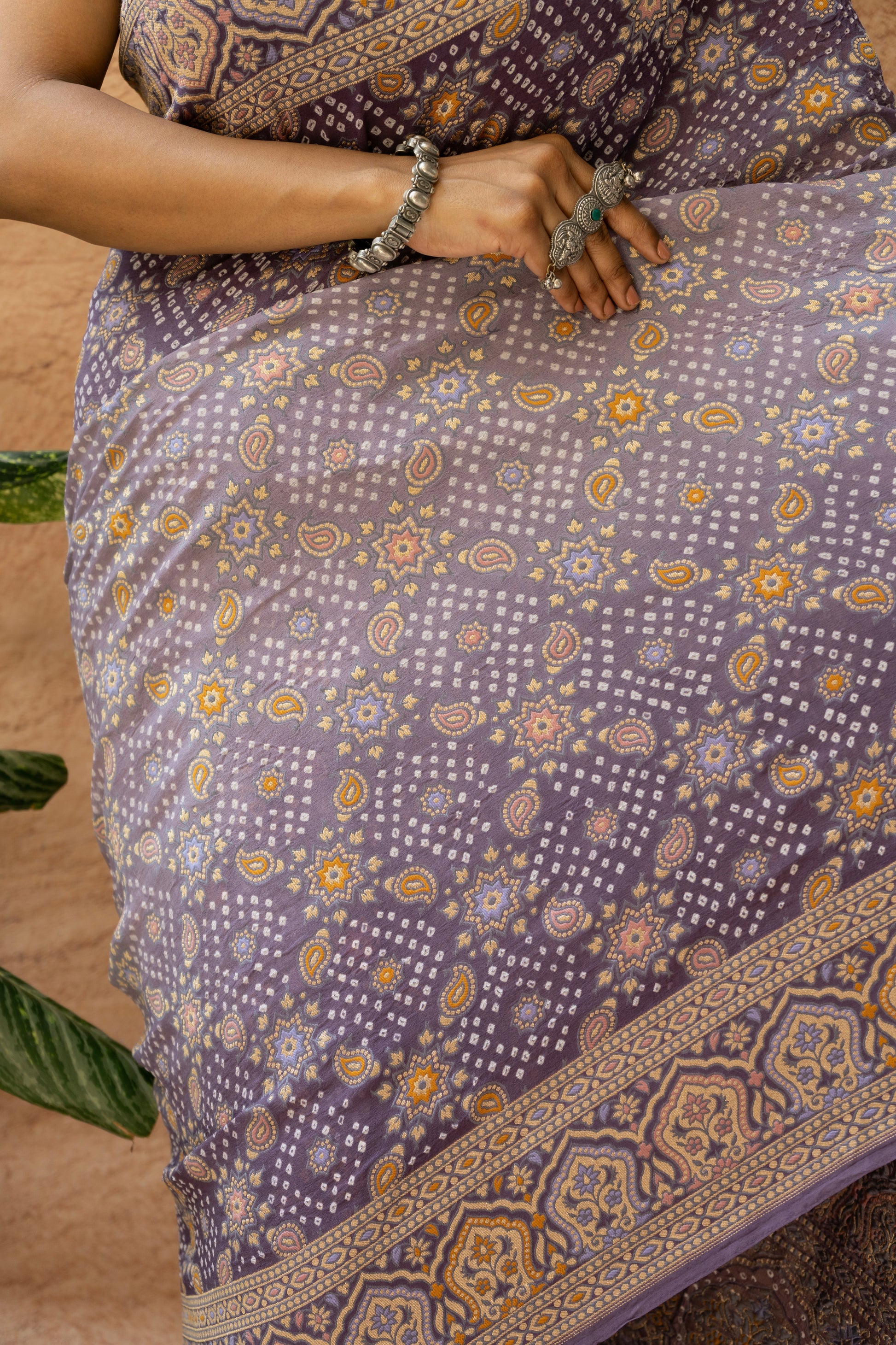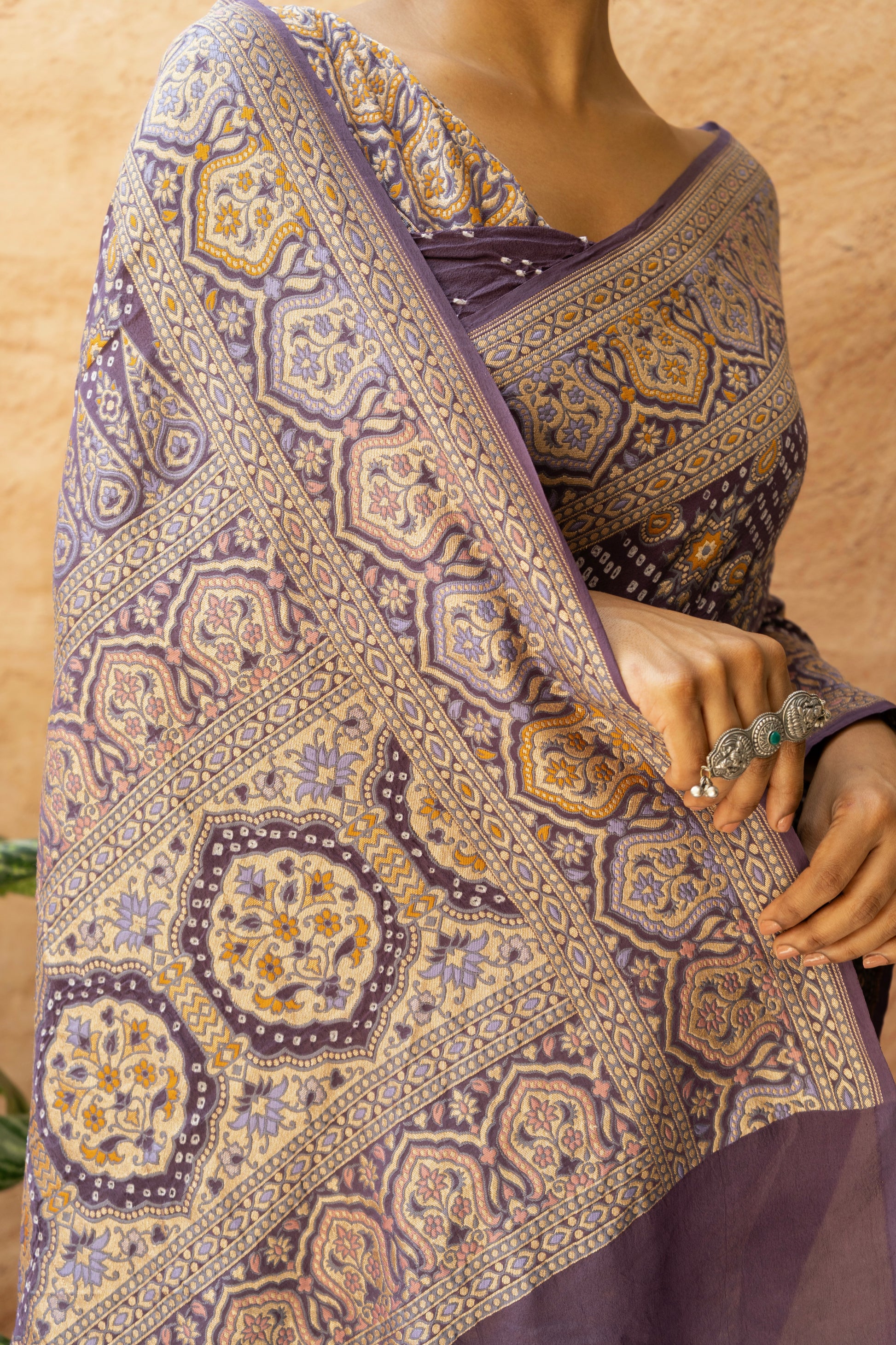 Ajrakh Weaving Purple Ombre Rai Dana Bandhej Saree