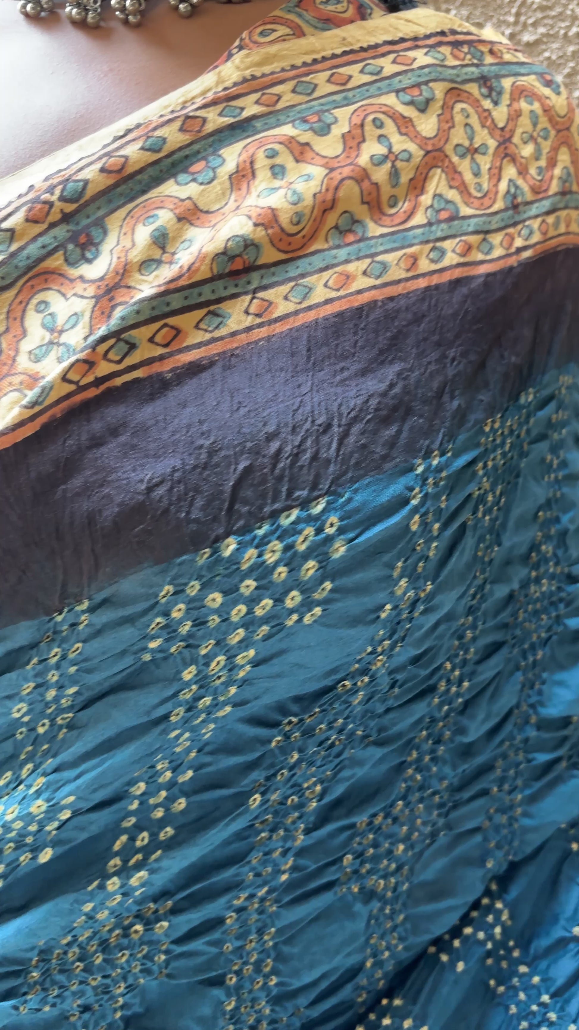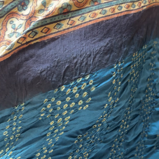 Chiniya Ajrakh Bharti Bandhej (Navy Blue) Saree