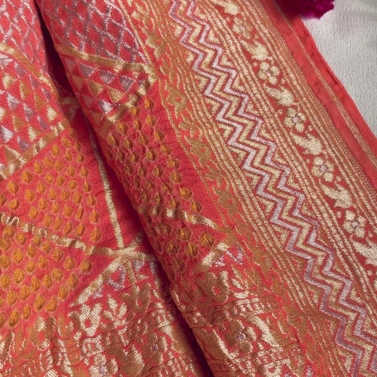 Georgette Abstract Rai Dana Peach Bandhej Dupatta