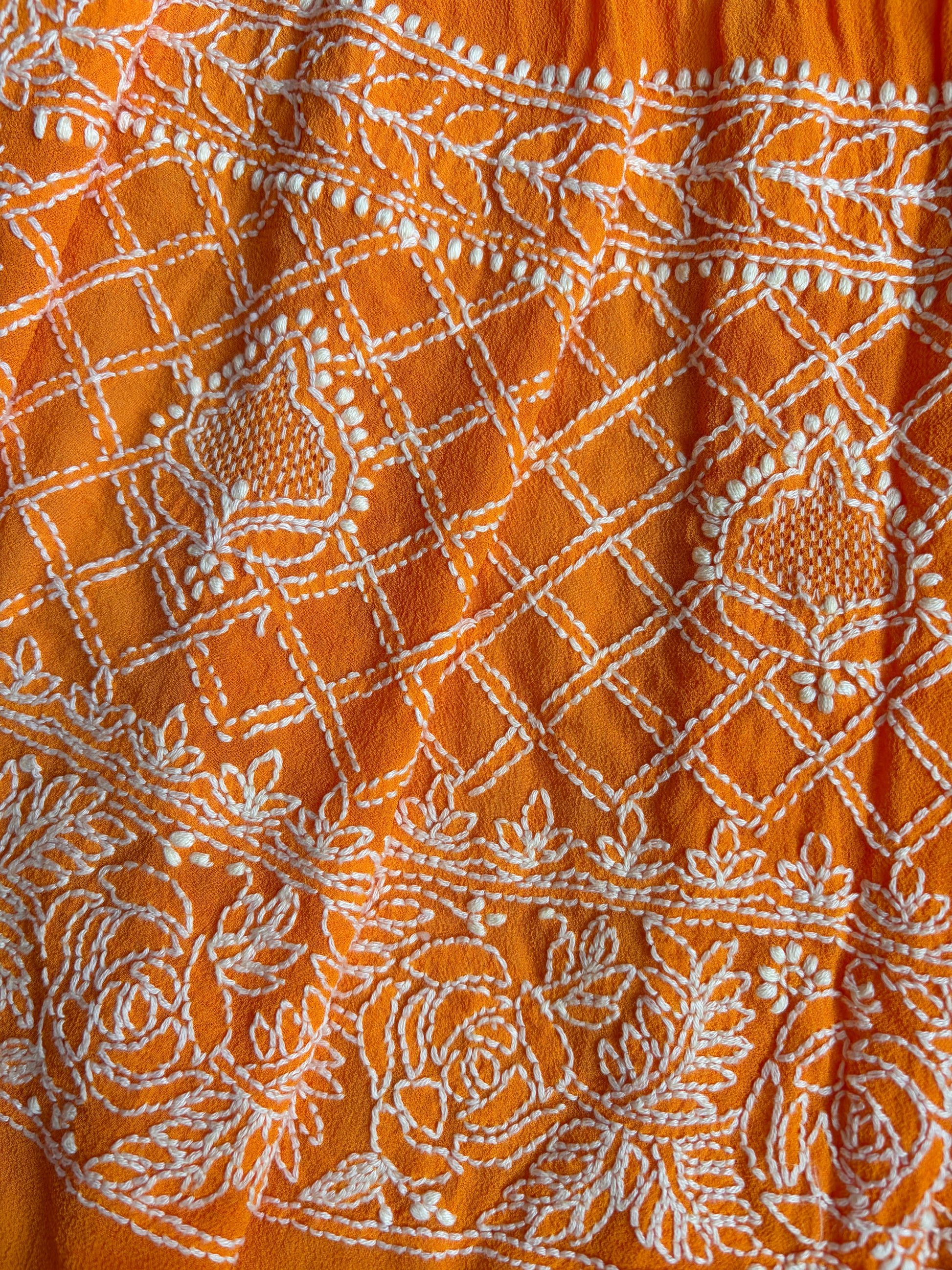 Georgette Lucknowi Orange Bandhej Dupatta