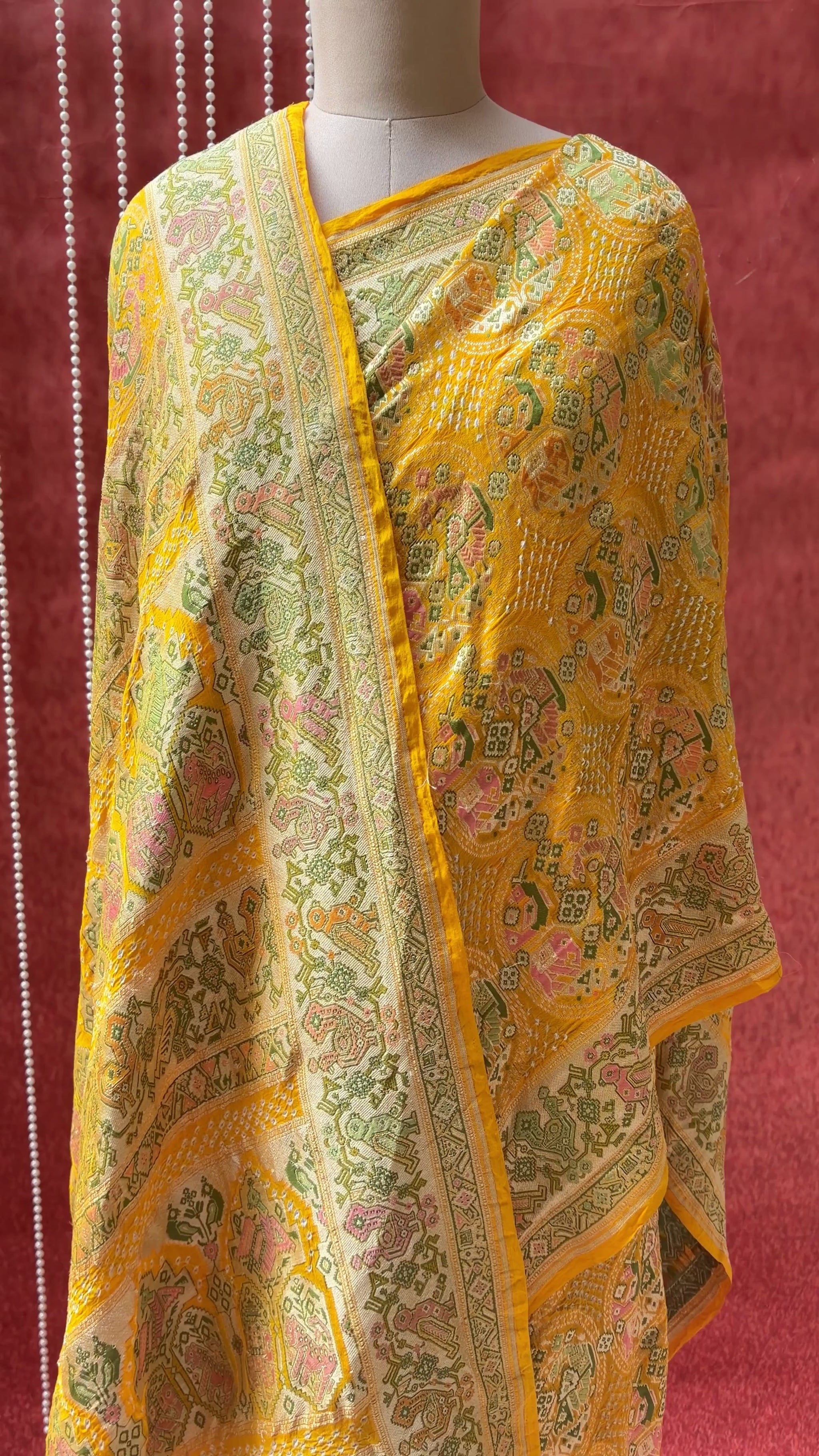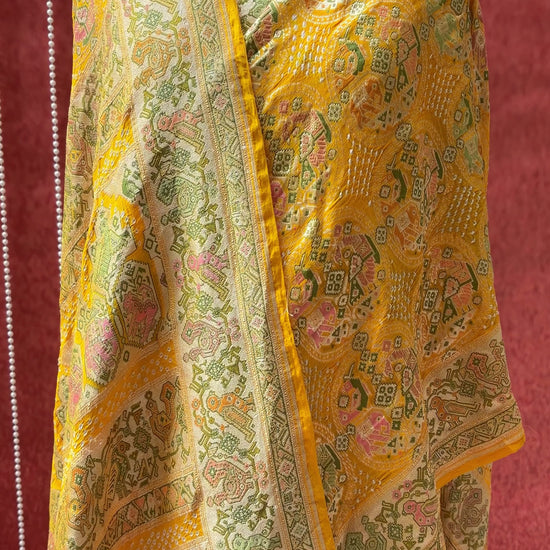 Georgette Patola Boota Meenakari Yellow Bandhej Saree