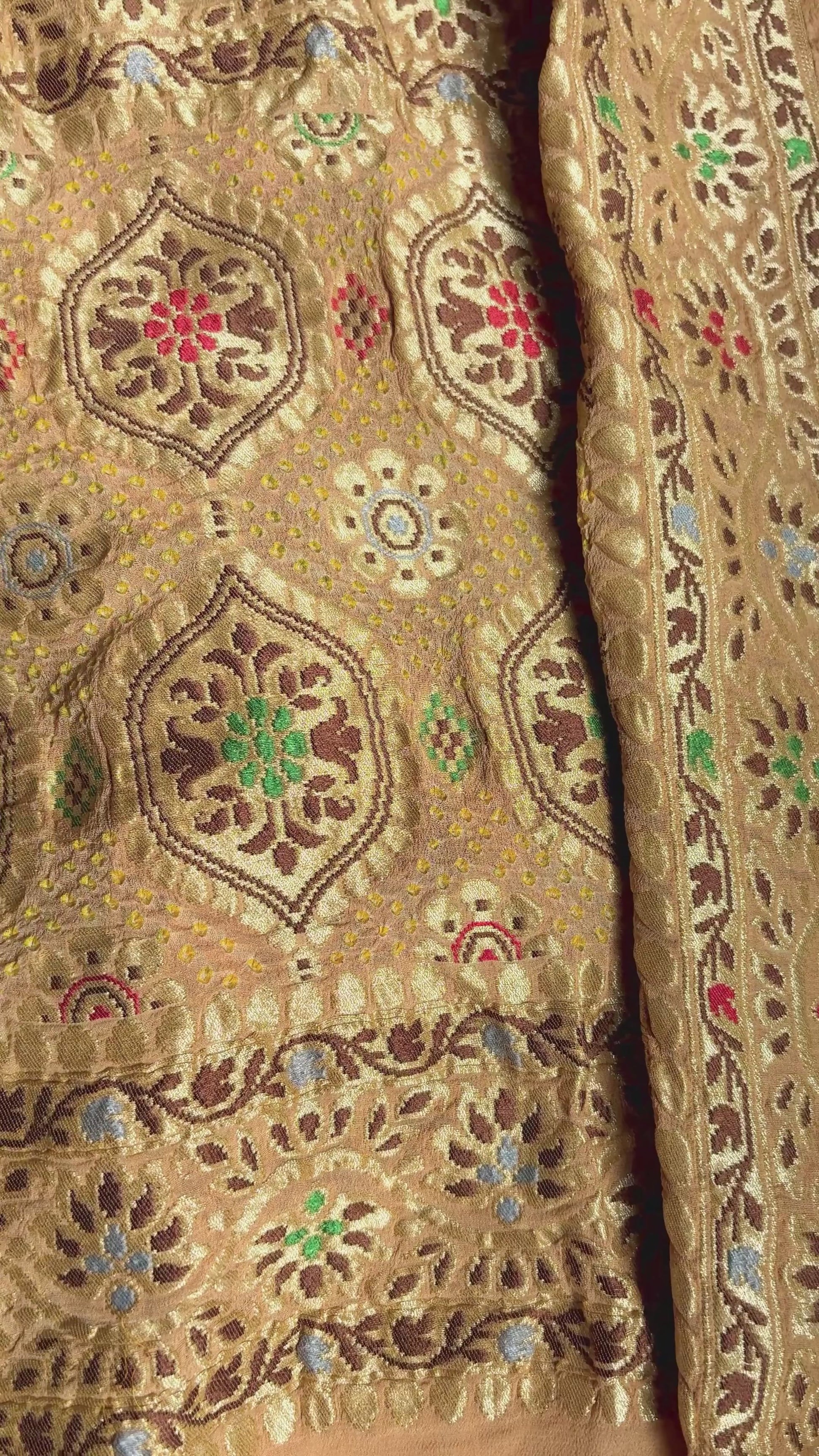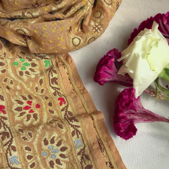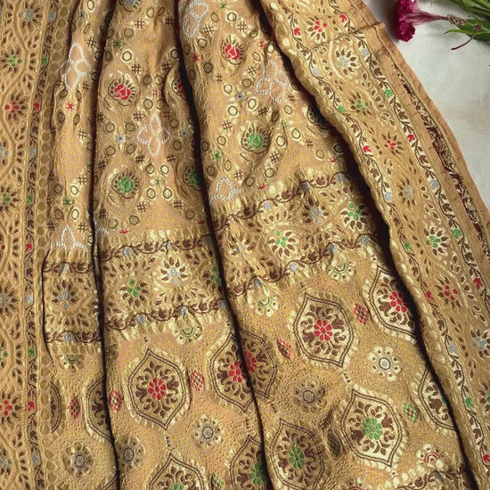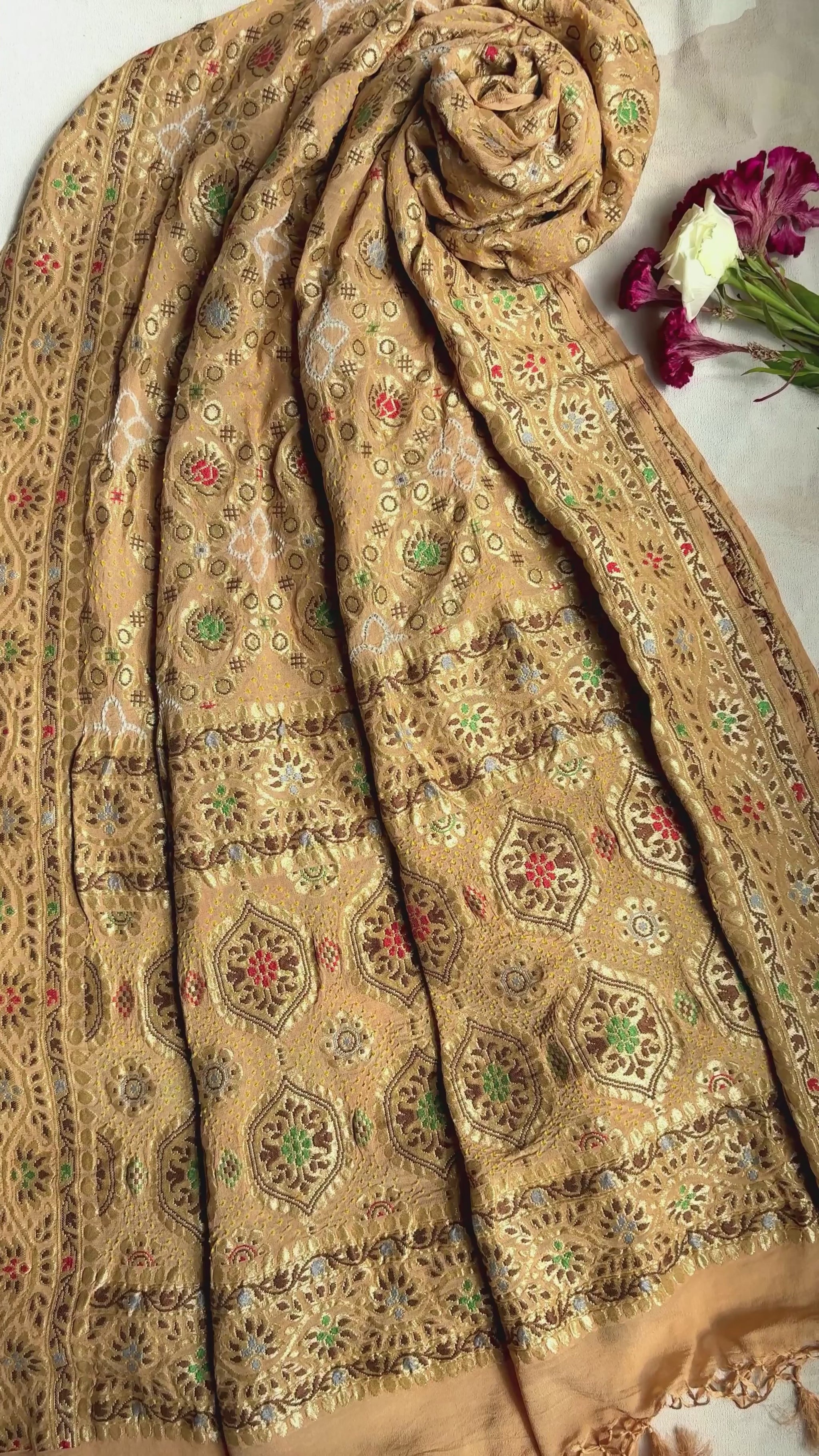Georgette Patola Rai Dana Tusser Brown Bandhej Dupatta