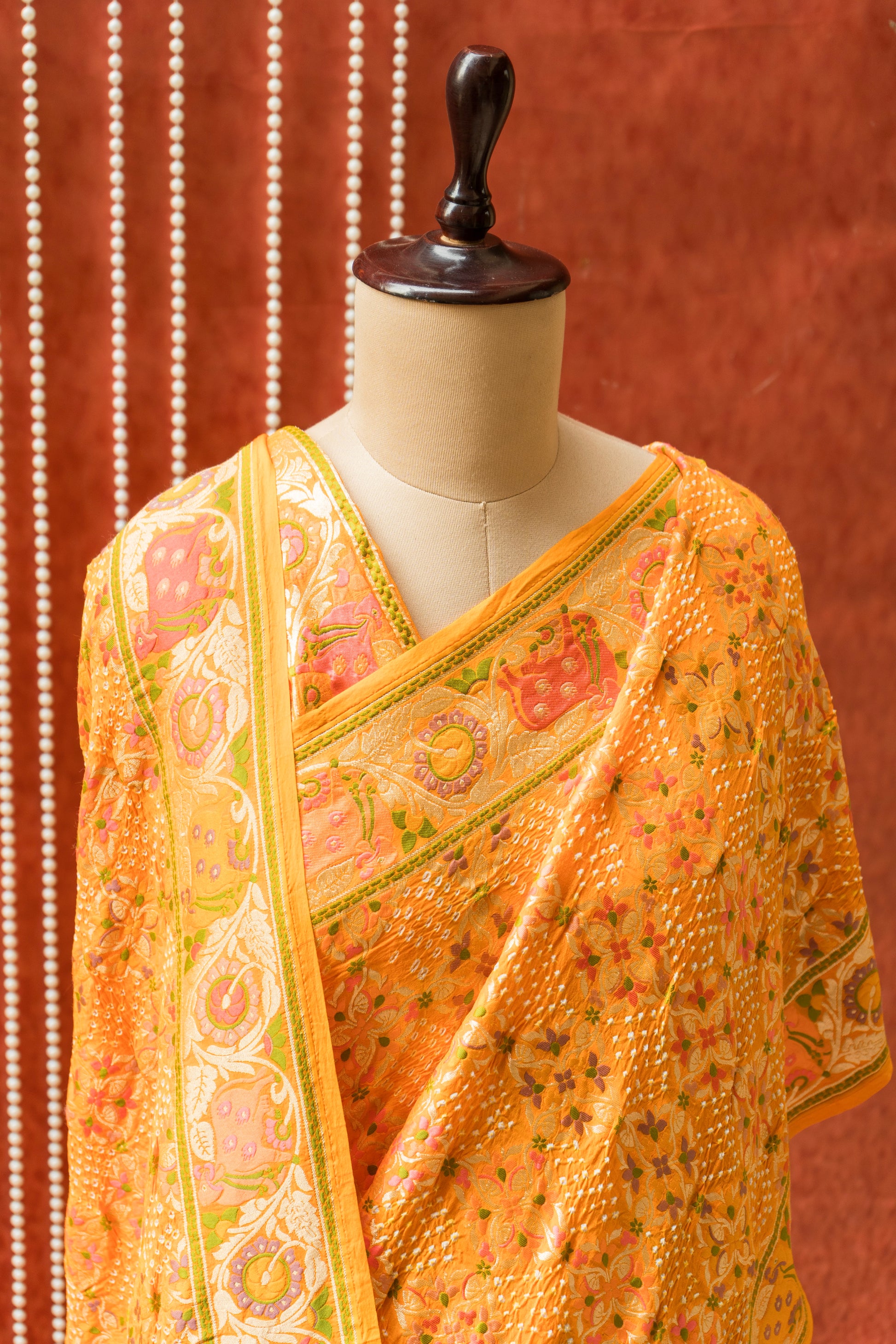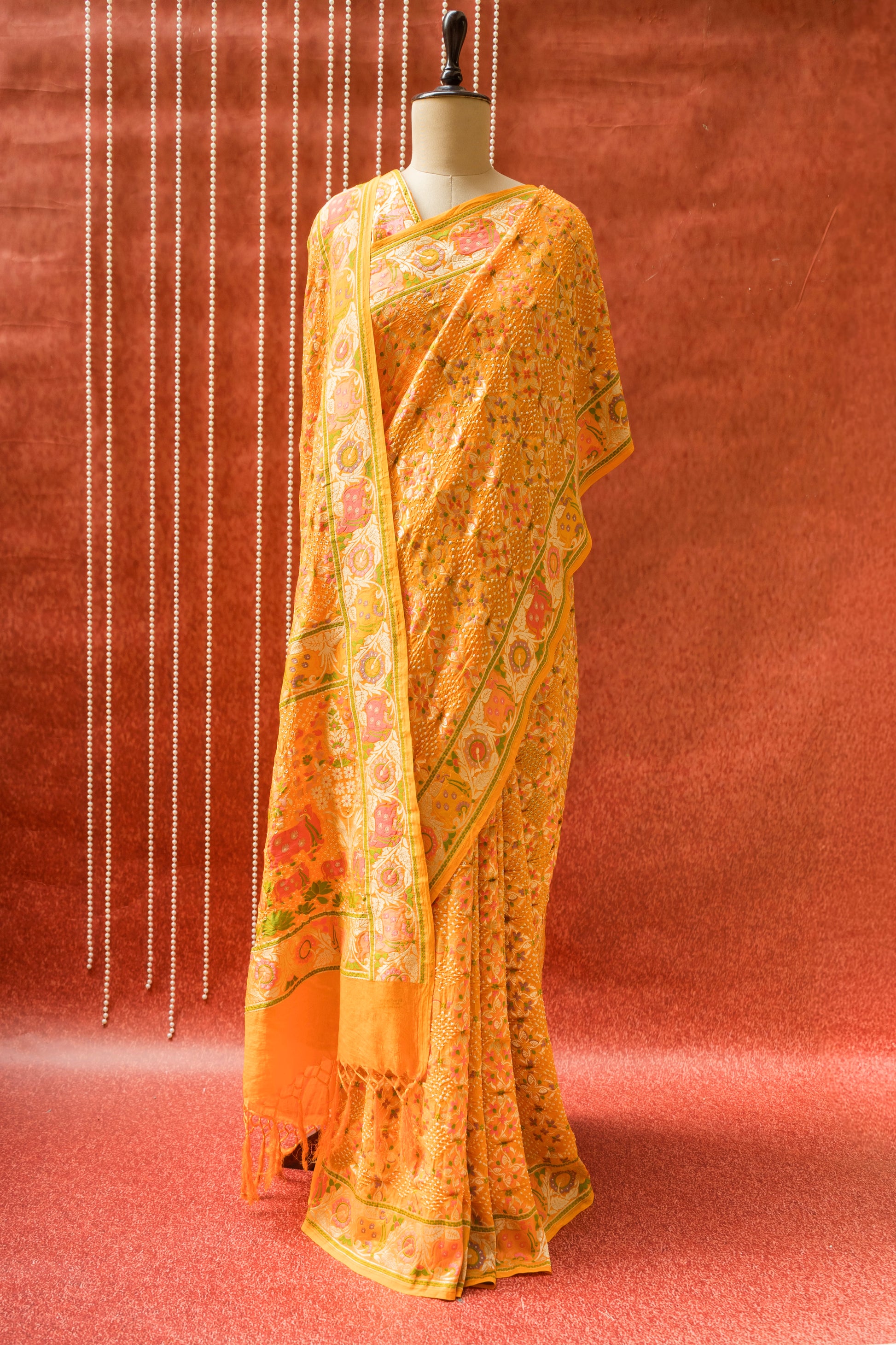 Georgette Pichwai Jaal Orange Bandhej Saree