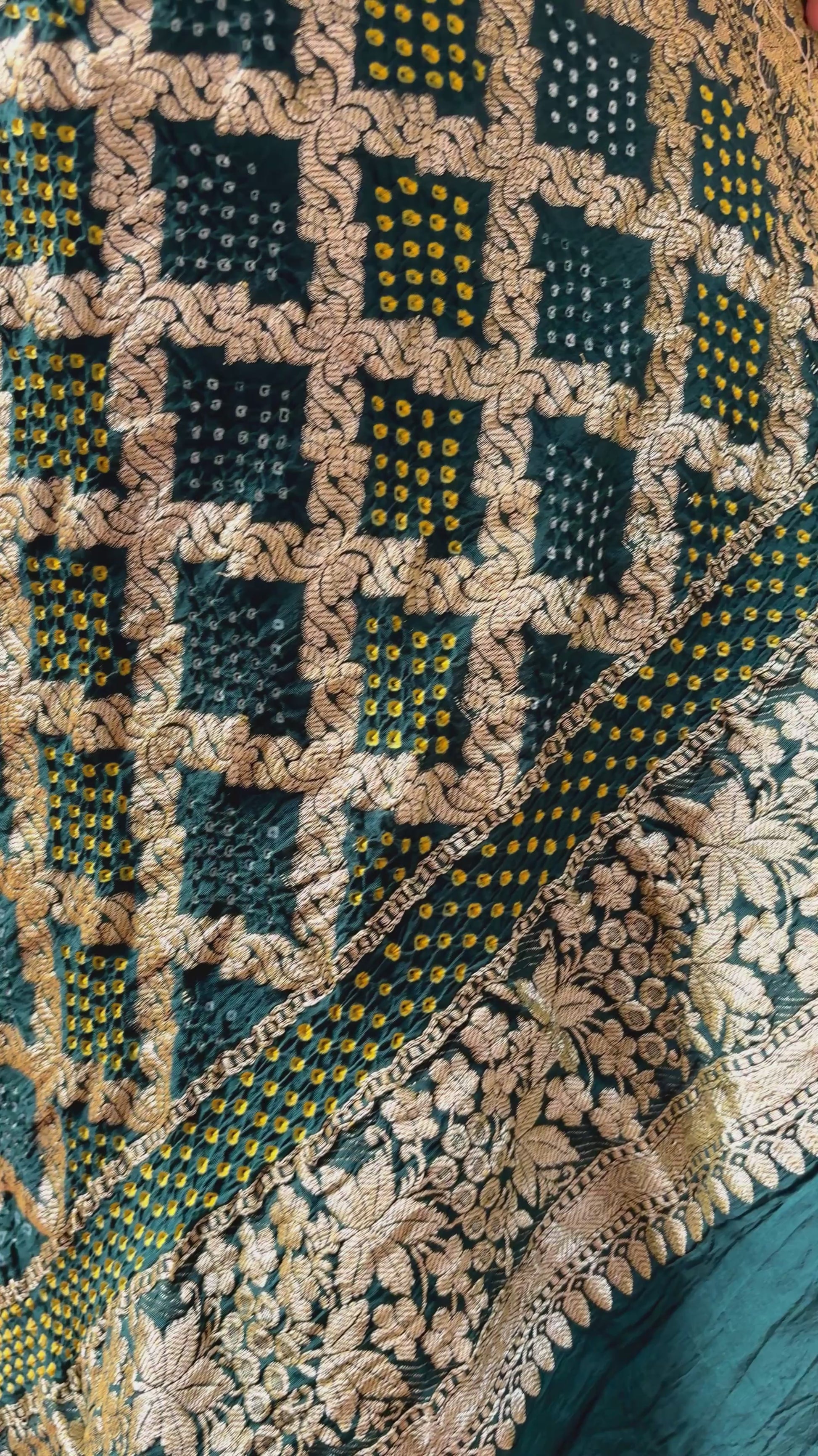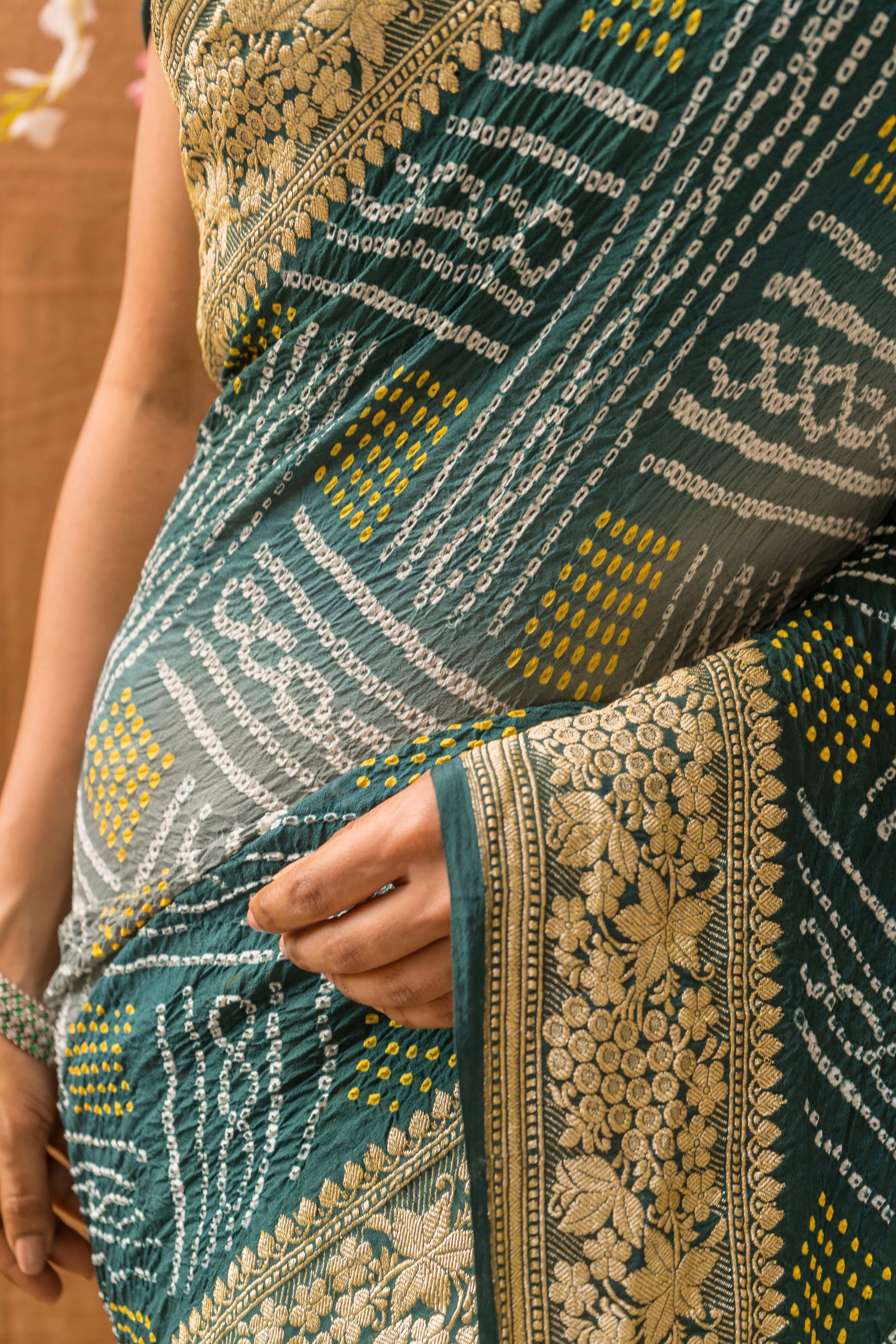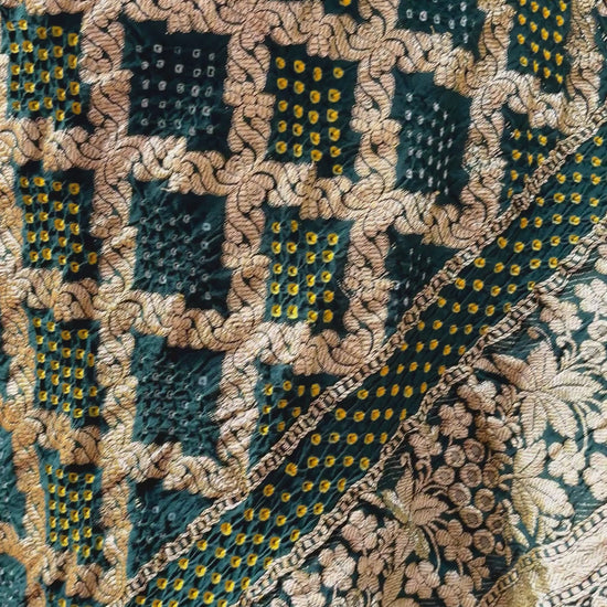 Green Shaded Bandhani with Floral Border Saree