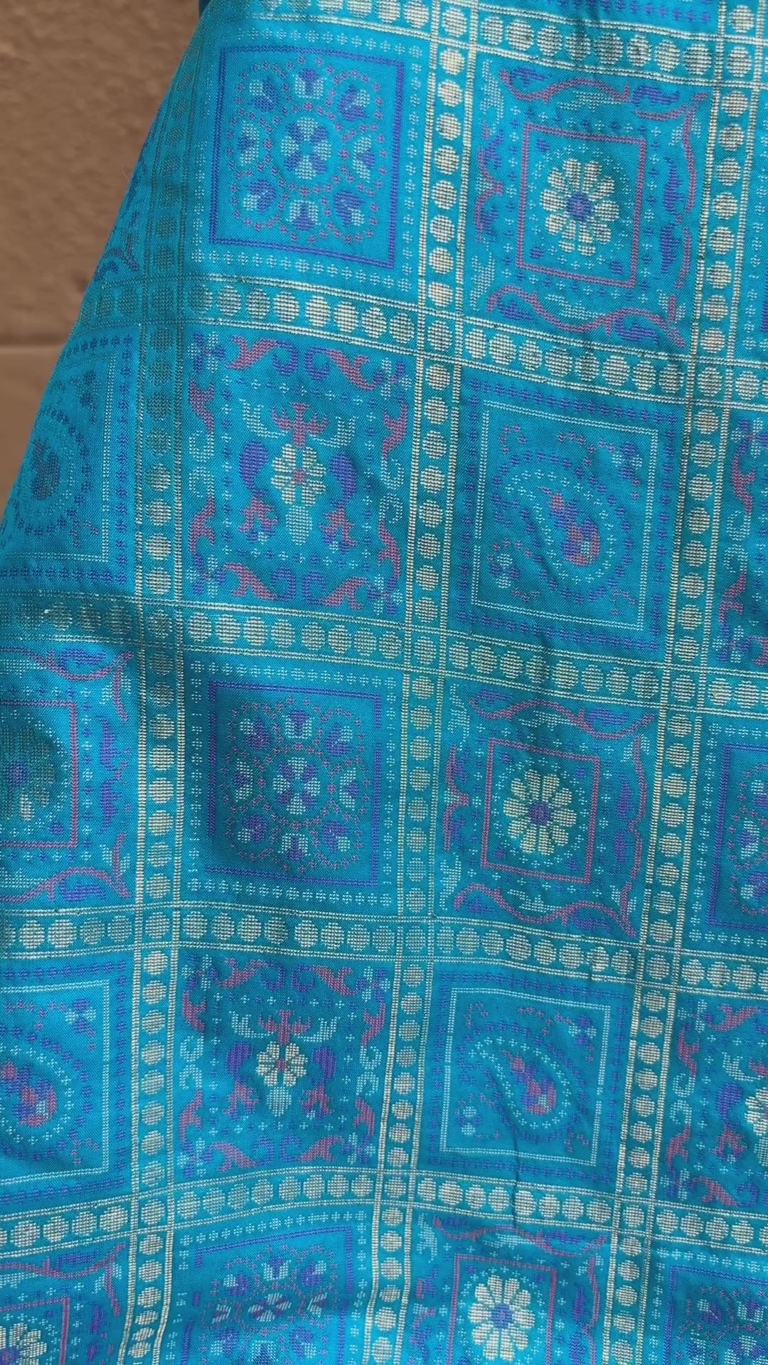 It is an handwoven art. A banarasi masterpiece which can be teamed up and styled with suits and gowns.