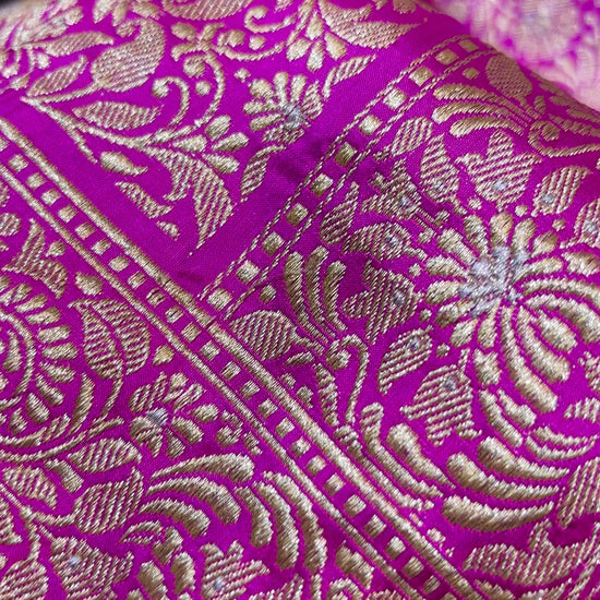 This exquisite Banarasi odhani is destined to welcome a family heirloom! An opulent full Kadhua floral jaal which brings with it the best of Indian weaving heritage. A real trousseau treasure.