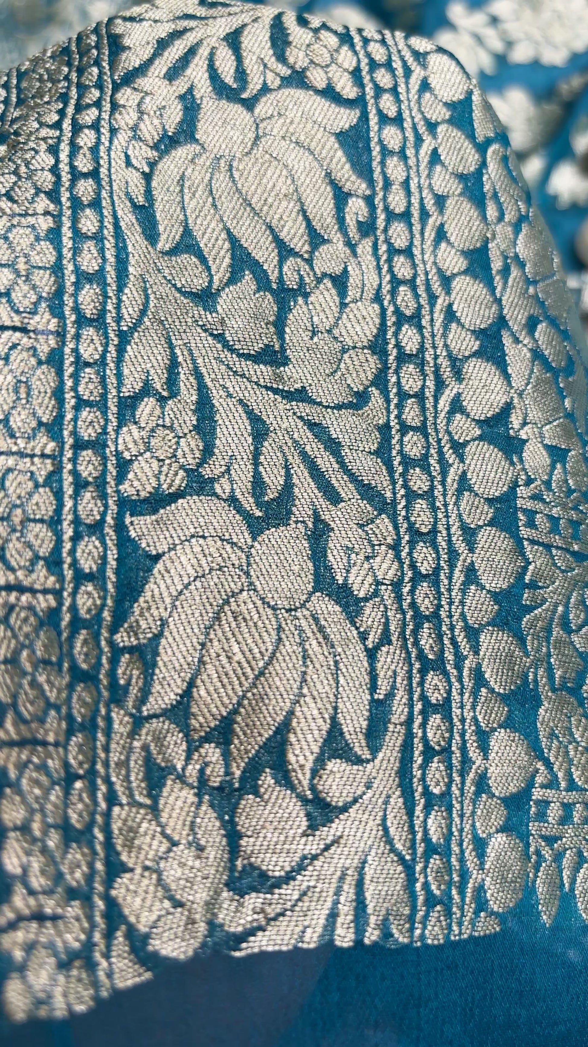 It is an handwoven art. Handwoven by craftsmen in Banaras, this piece is a perfect for uplifting a festive look.