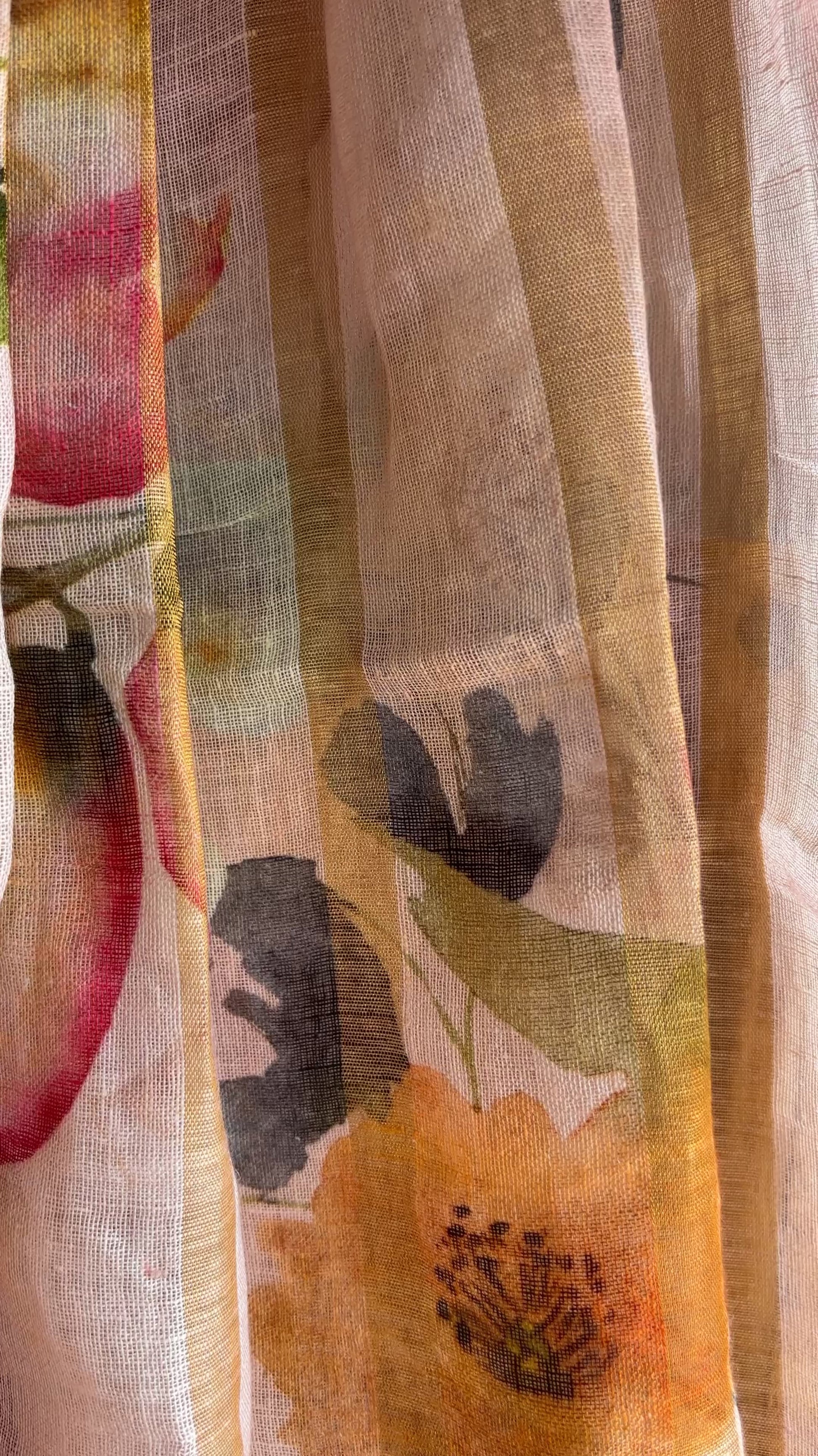 Linen Stripes Floral Painted (Baby Pink) Saree